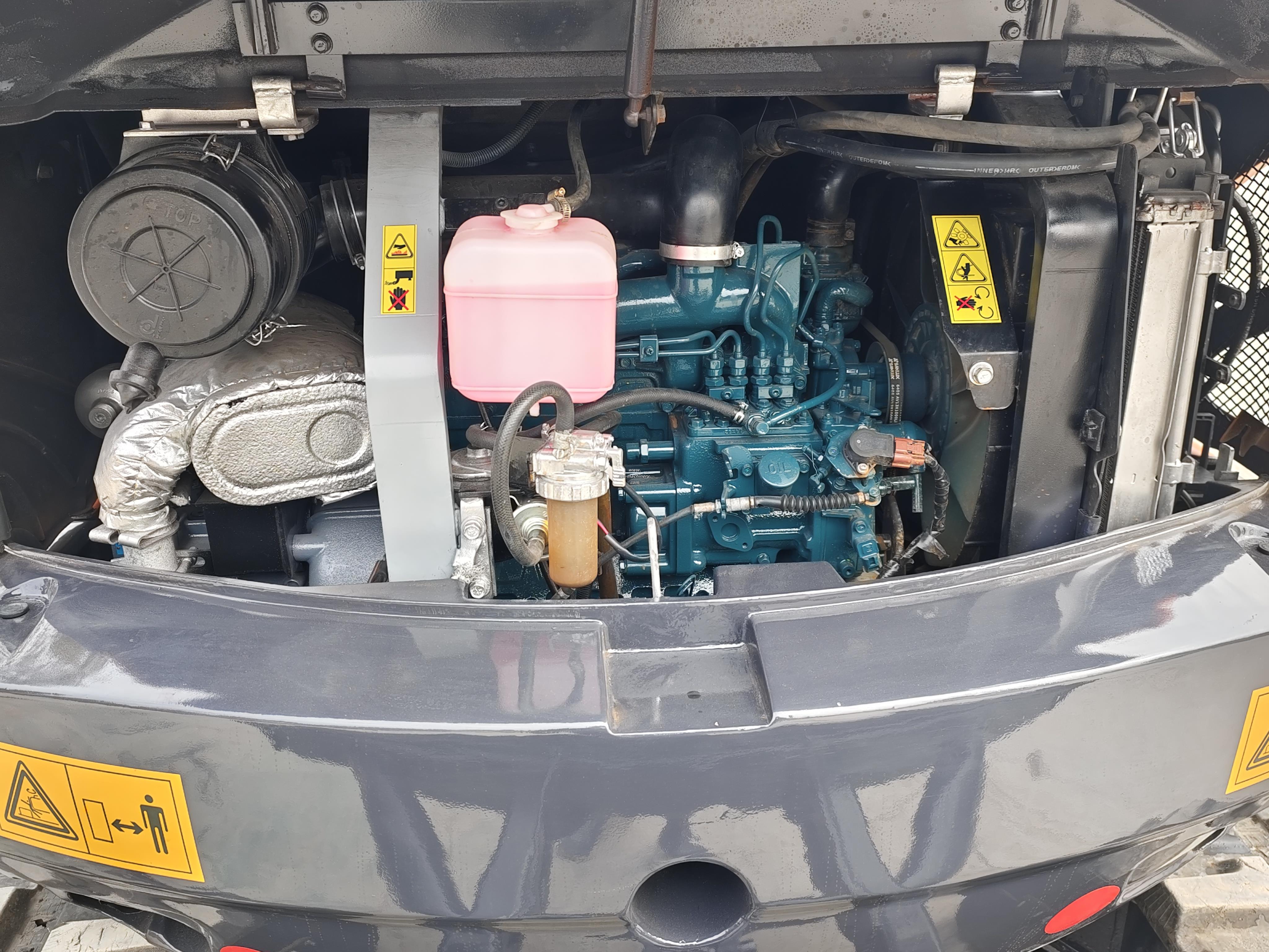 Drain all water from the engine cooling system or refill it with antifreeze. Fill the fuel system with diesel to prevent condensation from forming on the inner walls of the fuel tank. For the hydraulic system, retract all cylinder piston rods fully and apply grease to exposed parts to prevent rust.