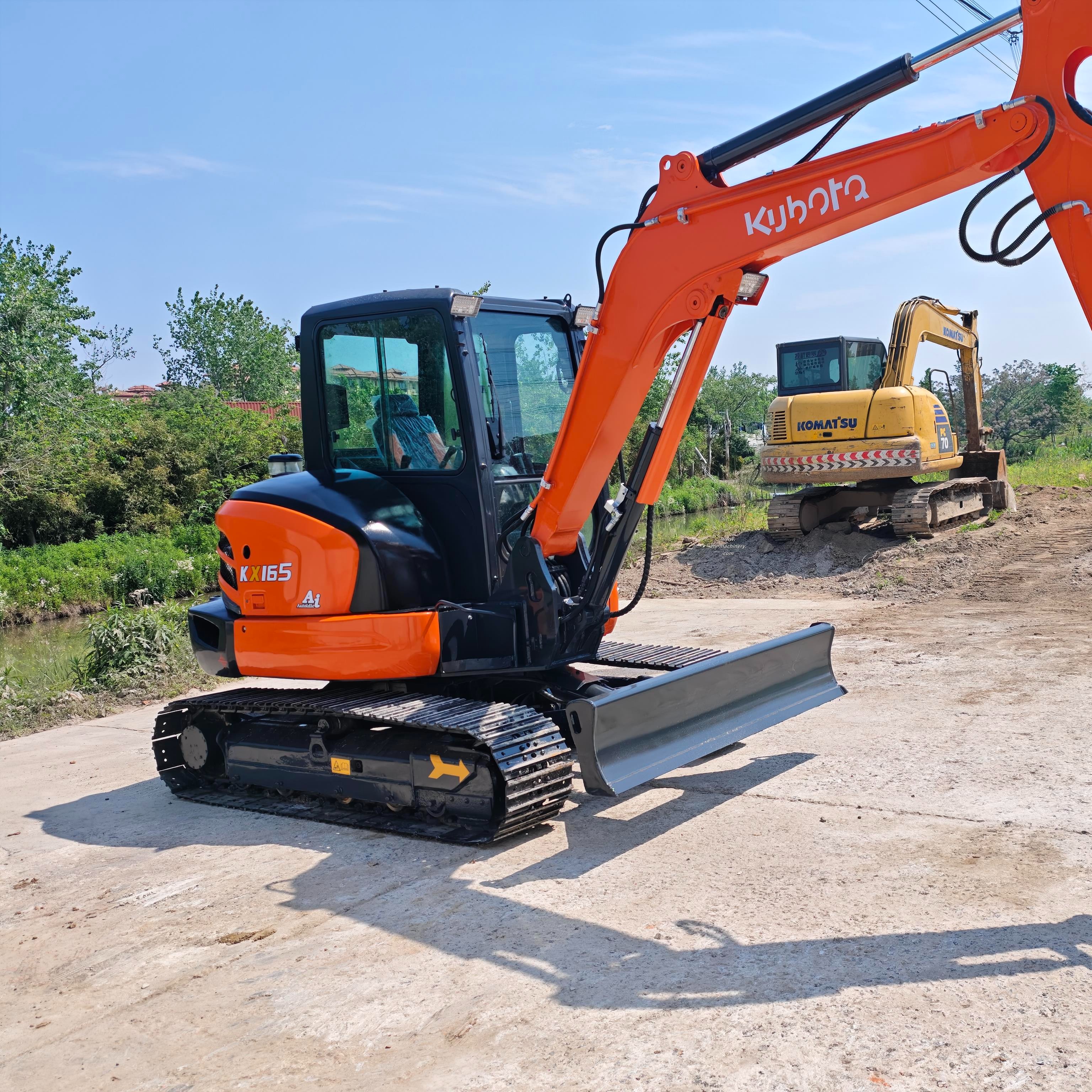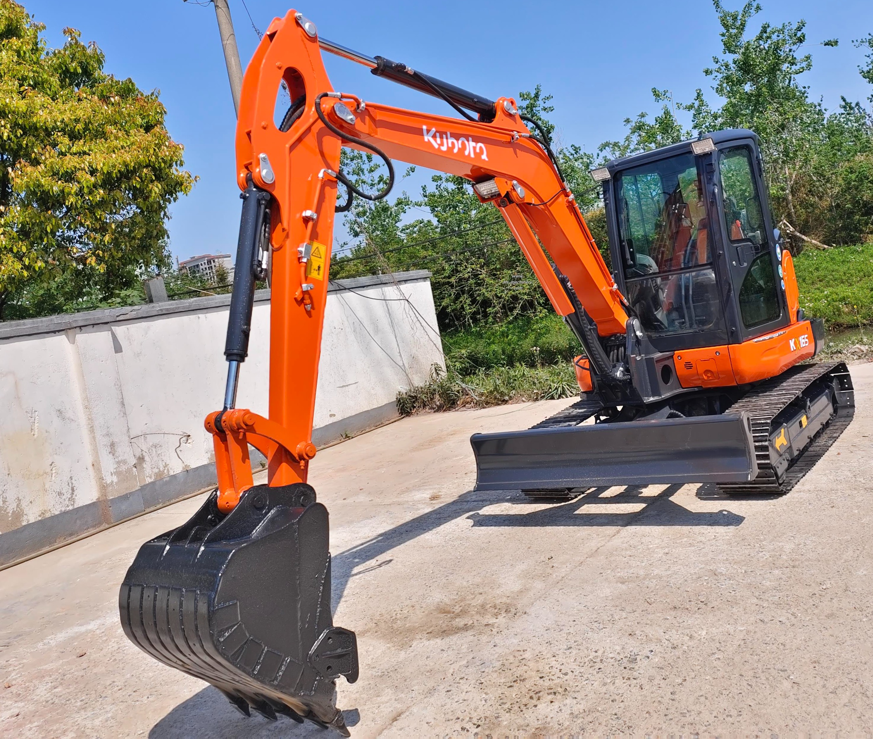 The Kubota KX165 excavator adopts advanced hydraulic lines and an efficient engine, has excellent digging capabilities, and can easily complete various excavation tasks. It has excellent maneuverability, can rotate freely in a small space, and can adapt to various complex working environments.